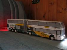 fotogaléria papierového autokaru so svietiacimi svetlami.